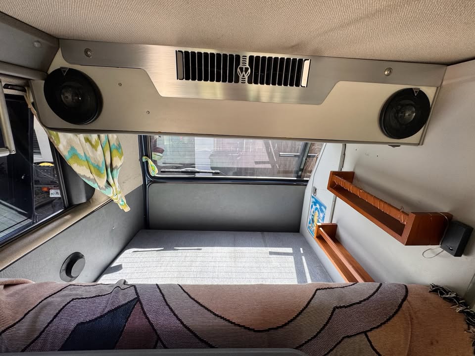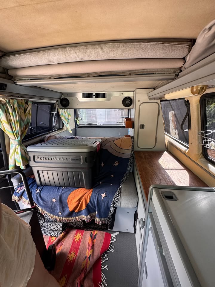 I’ve owned this van for over 10 years. Found her in Florida — she was originally owned by the guy behind Bing Surfboards — and after months of searching for the perfect camper, I knew right away this was the one. She’s been my home on wheels, my festival rig, and my escape pod ever since.